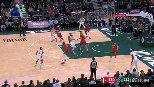 阿门龙精虎猛打三分之外,这球妙在扬尼斯被贾巴里牵扯在底角,无法补位。